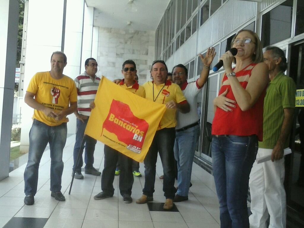 Os diretores do Sindicato dos Bancários do RN, Marcos Tinôco, Letto Luiz e Berinho Paiva estiveram apoiando o Fórum dos Servidores Estaduais em Ato Público na manhã desta terça-feira, 30. O Ato foi promovido em defesa do Fundo Previdenciário Estadual que está sendo surrupiado pelo governo.