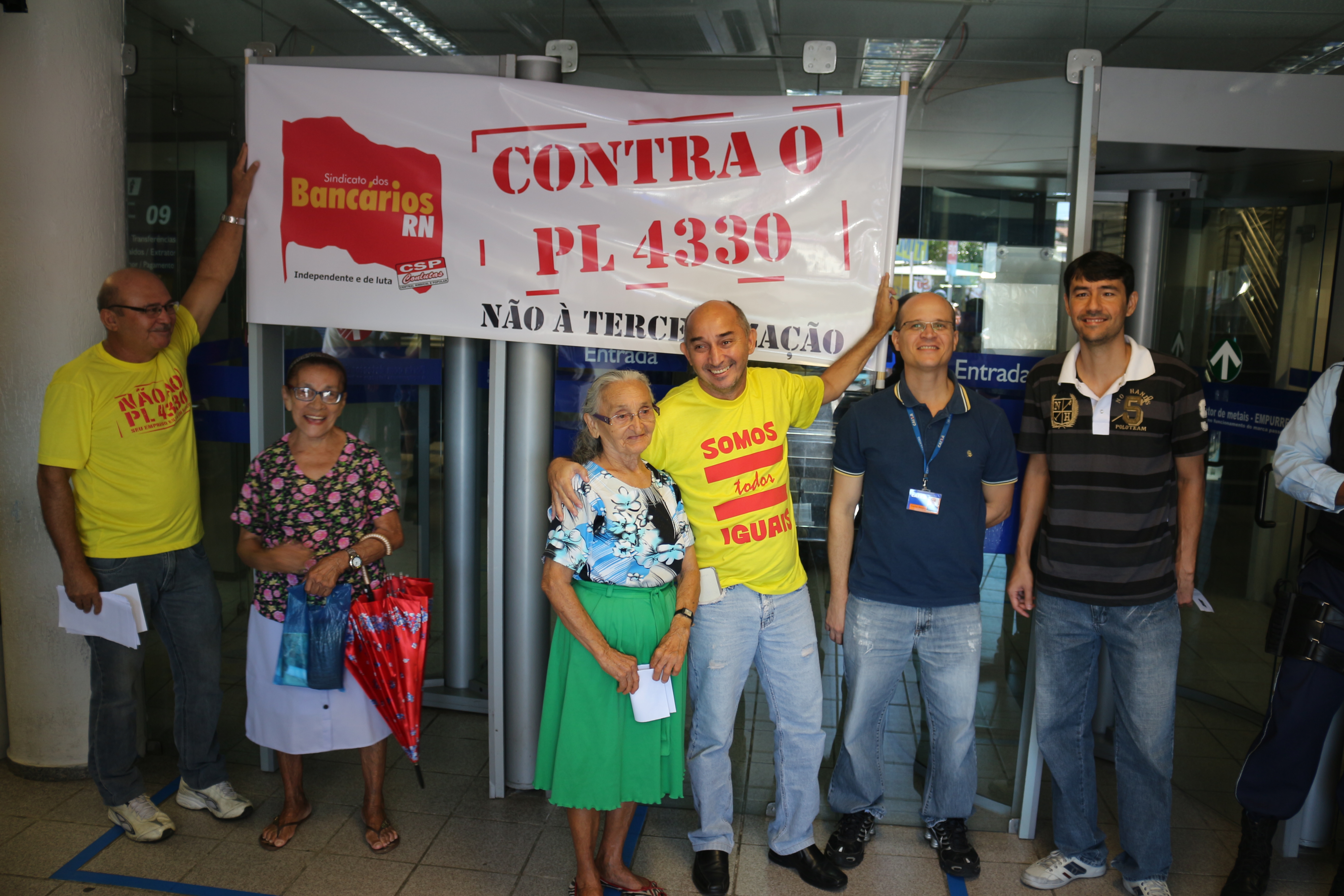 O Sindicato dos Bancários do RN atrasou a abertura das agências do corredor do Alecrim em uma hora. Movimento faz parte do Dia de Luta convocado por várias centrais e sindicatos do país contra os ataques à classe trabalhadora.