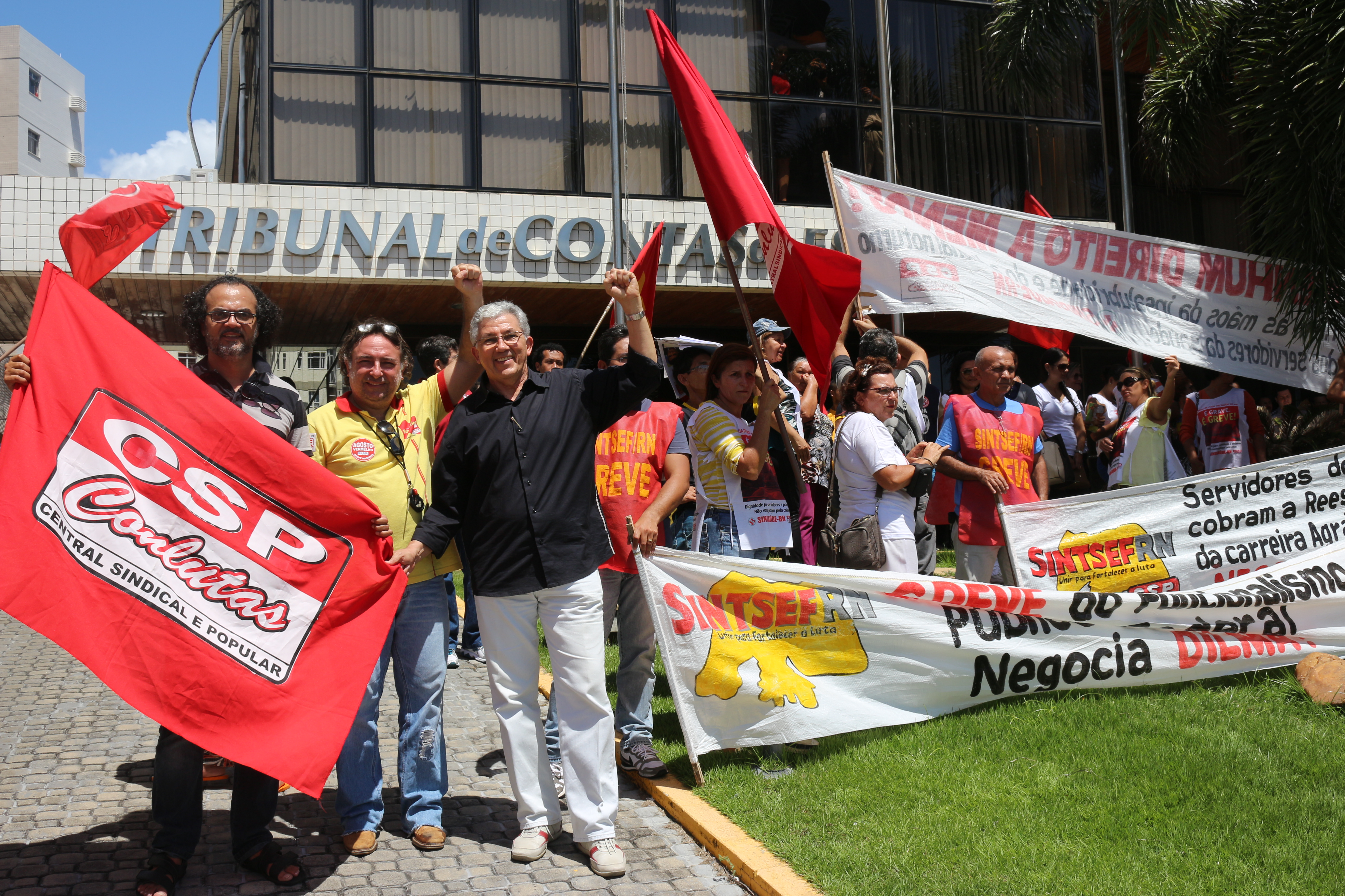 Saindo do HUOL, os participantes foram em passeata até o Tribunal de Contas do Estado para pressionar e chamar a atenção do governo. A manifestação no TCE diz respeito a categoria da saúde estadual. Eles foram surpreendidos há cerca de uma semana com retirada de gratificações transitórias das aposentadorias dos servidores que deram entrada no benefício a partir de dezembro de 2014.