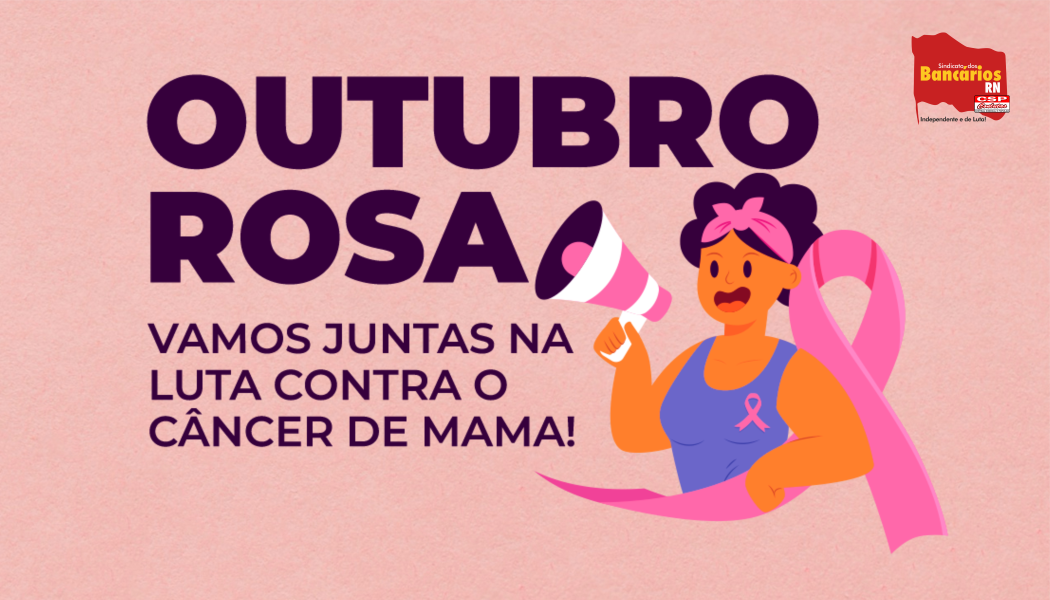 O Sindicato dos Bancários do RN está junto com a campanha do Outubro Rosa, mês de conscientização e prevenção ao câncer de mama. Estamos juntas e juntos com as bancárias nessa luta pela vida, pelo cuidado e pela saúde das mulheres.